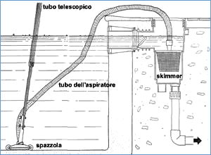 sul fondo della piscina deve essere pulita usando un aspiratore subacqueo